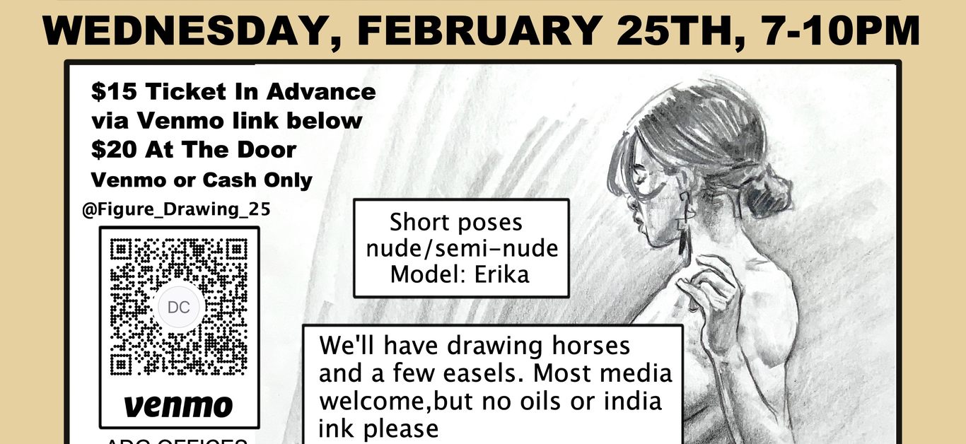 $15 ticket in advance, $20 at the door. Most media welcome, but no oils or india ink.